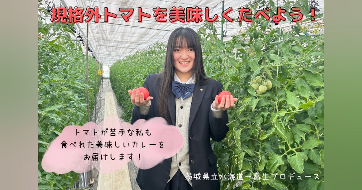 県立水海道一高の探究活動で、祖父母のトマト農園で形がよくないために規格外となって廃棄されるトマトを活用した「トマトカレー」を開発し、商品化に向けたクラウドファンディングを実施しています!