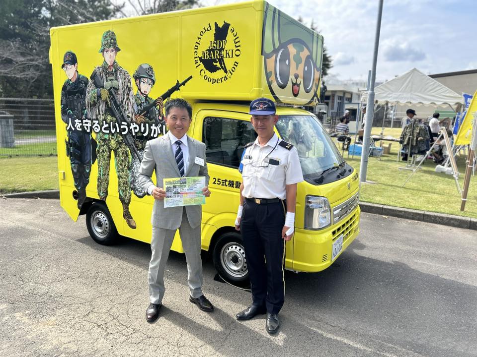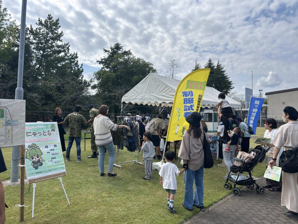 駐屯地の一般開放イベントでもあります。記念式典のほか、装備アトラクションや体験試乗も行われました。茨城地方協力本部広報ブースも盛況で、子どもたちの制服試着体験も大人気でした。