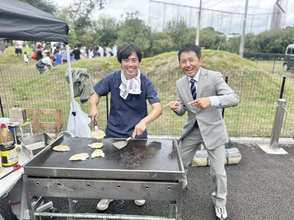 中川先生も自ら焼きそば担当で忙しそうでした。焼きそば、美味しくいただきました!二所ノ関部屋からも力士の皆様が子供たちと相撲で交流。各ブースも大賑わいでした。親子で参加してゆっくりと楽しめるイベントですね。