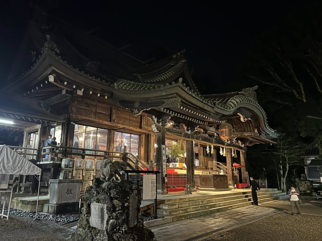 残念ながら雨のため月を見ることはできませんでしたが、箏や尺八の美しい音色が境内に響き渡り、幻想的な雰囲気を醸し出していました。