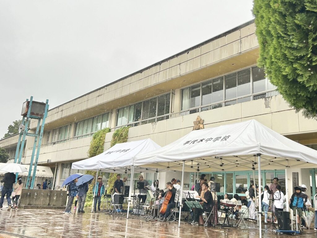 雨の降る中での開催となりましたが、会場となった手南小のご配慮で、昇降口の一部も活用させていただいて、ふろしき市なども多くの来場者で賑わいました。