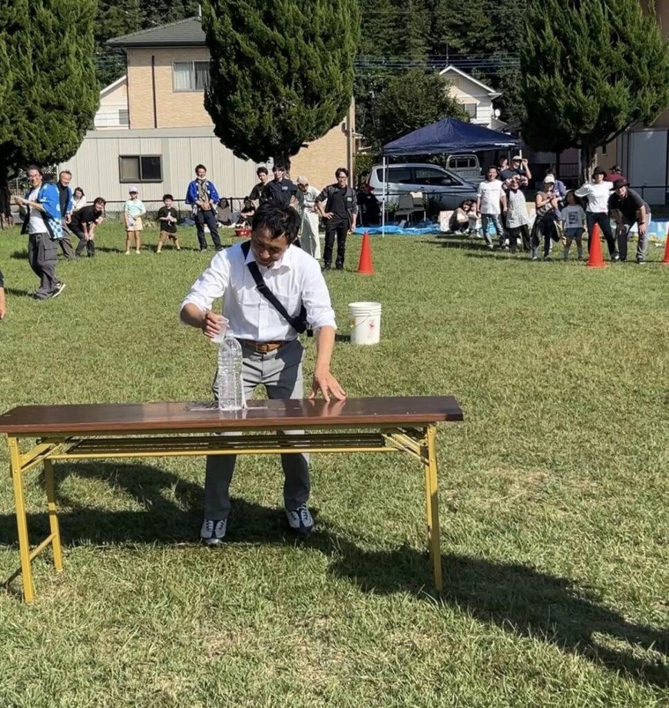 地区の皆様が一堂に会して懇親を深めるお祭り。模擬店のほか、常会対抗でレクリエーションもあり、私も参加させていただきました。