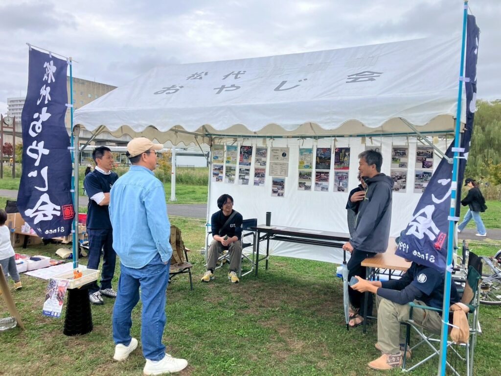 今回は、お声がけいただいて、松代おやじ会でブース出展しました。これまでの活動などについて展示。今後の活動についても発信してきました。松代おやじ会の活動の場も広がってきています。