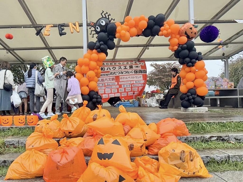 仮装したり、ゴミ拾いをして、研究学園駅周辺のお店を回ってお菓子をゲット!また、参加者には、研究学園地区の歴史がわかるオリジナルトレカが配られました。