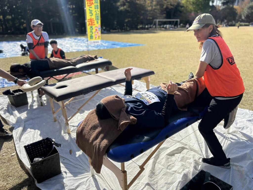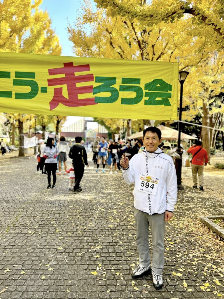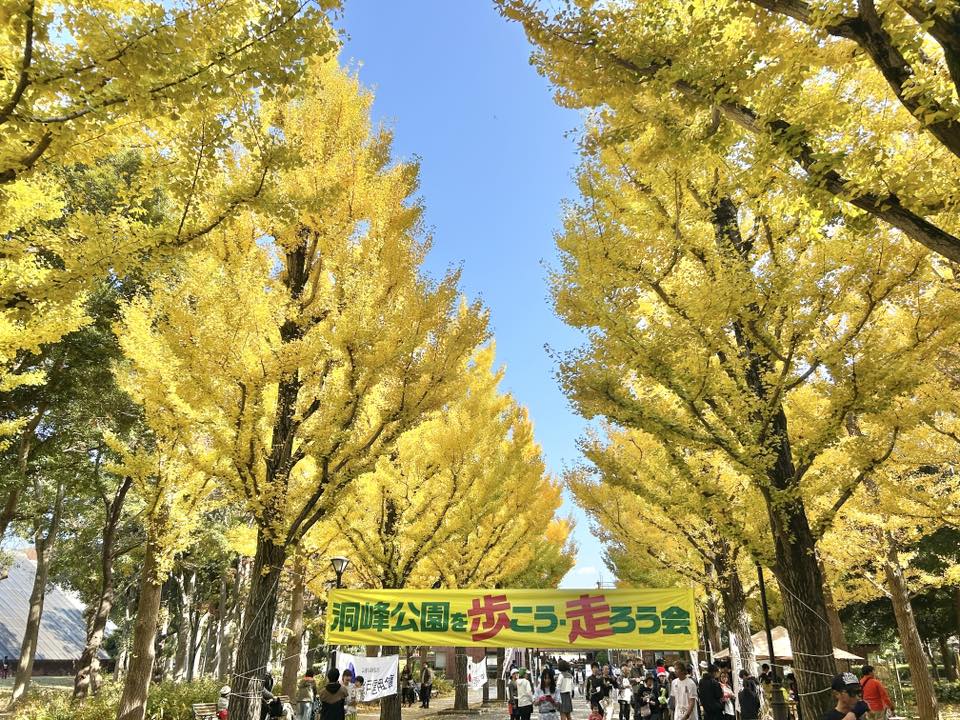 靴飛ばしアトラクションもあり、爽やかな秋空の下、緑豊かな公園で気持ちよく体を動かせました。イチョウ並木もきれいに色づきましたね。