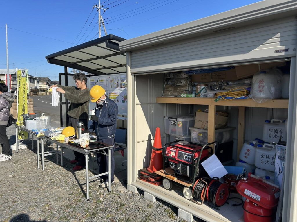 また、防災倉庫が展示されていました。防災には、日頃からの準備として、こうした地区のイベントを通じて地域の顔の見える関係と繋がりを構築しておくことも大切ですね。