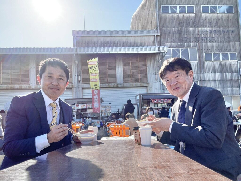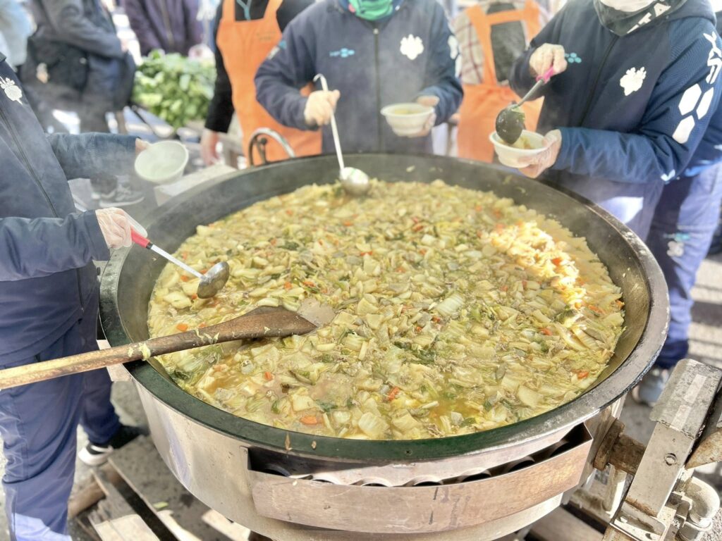 新鮮な農産物が販売。一定額以上のお買い物をすると、大根がいただけるサービスもありました。あたたかい豚汁をいただきながら、イベントをゆっくりと楽しませていたきました。