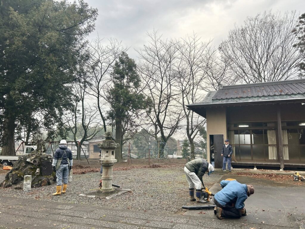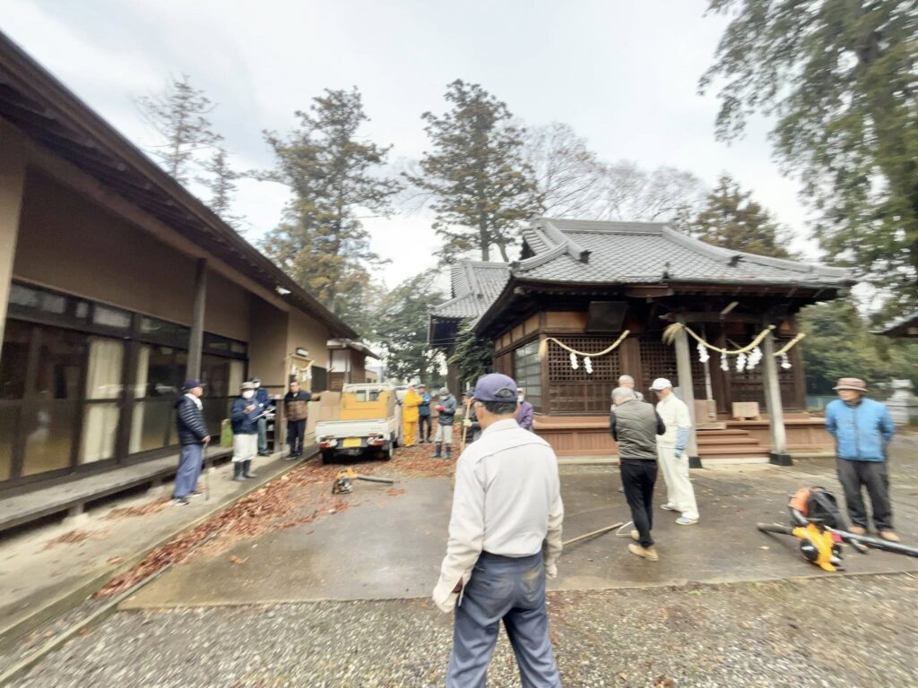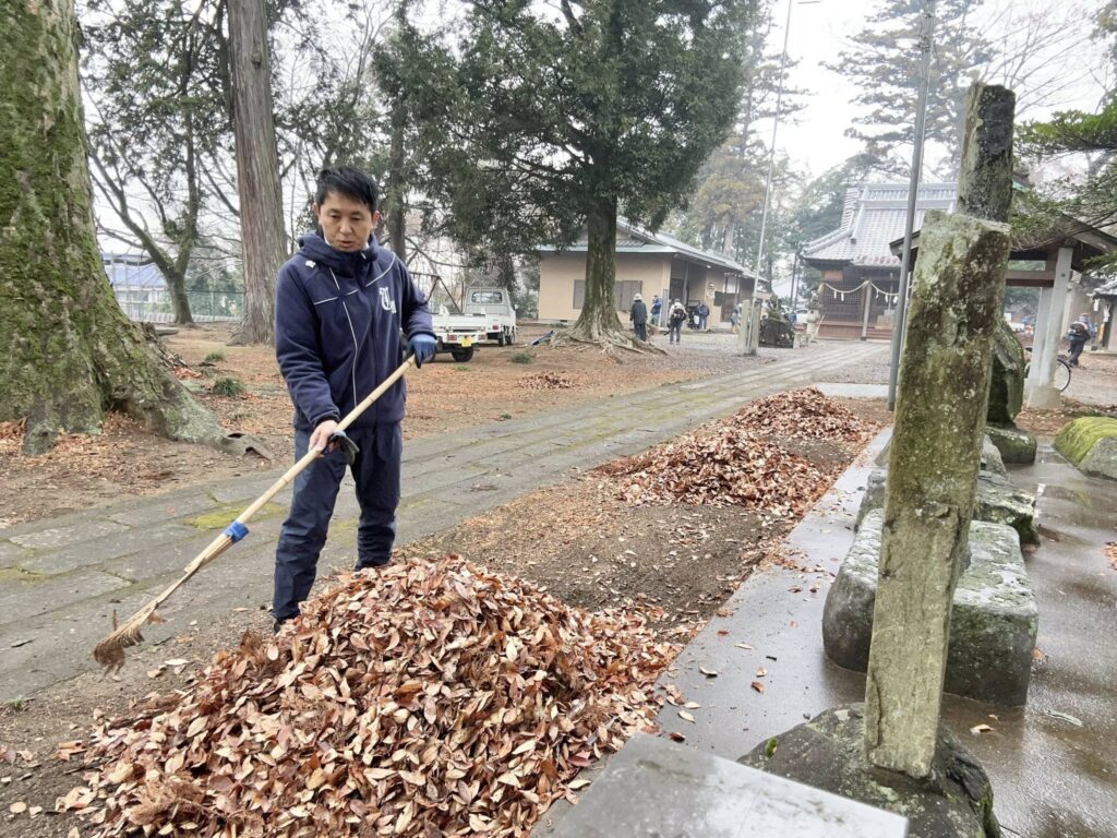 今朝は、吉沼八幡神社の年末大掃除が行われました。地域の皆様と神社本殿や境内などの一年の汚れや落ち葉を集めて大掃除です。