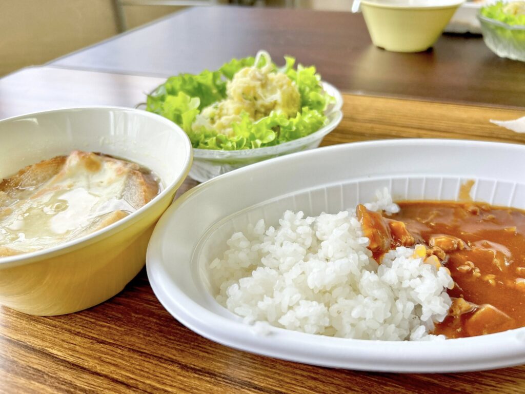 今日のお昼は、「みんなの食堂やたべ」でランチ。ハヤシライスをいただきました。