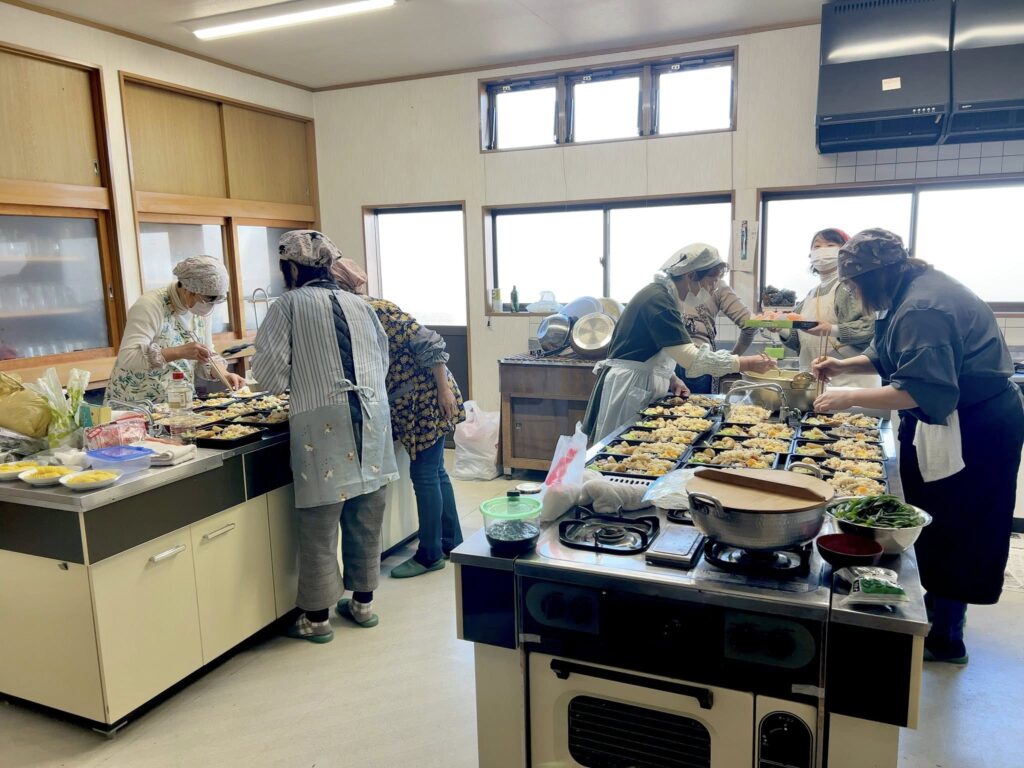 今日は、出来立てお餅もあって、おなか一杯になったので、お弁当はお持ち帰り。月2回開催している地域の和やかな交流の場ですね。