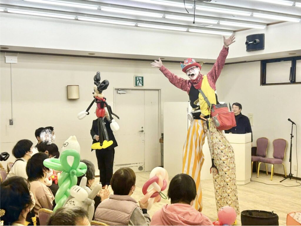 午後の部では、風船ピエロのパフォーマンスステージ。利用者の皆様と楽しいひと時を過ごしました。