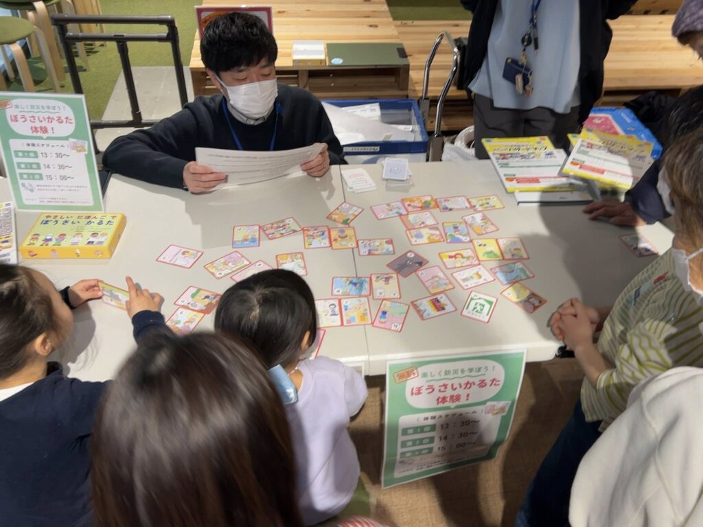 防災かるた体験では多くの子供たちが楽しみながら防災を学んでいました。また、シャカシャカストラップワークショップでは、防災に関するピクトグラムを選んでオリジナルストラップを作成しました。