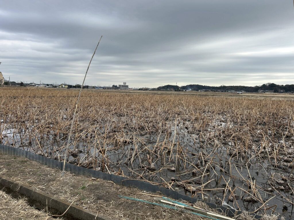 つくば上の室のレンコン圃場を訪問しました。レンコンといえば、土浦市が産地として有名ですが。実は、つくばでも美味しいレンコンが生産されています。
