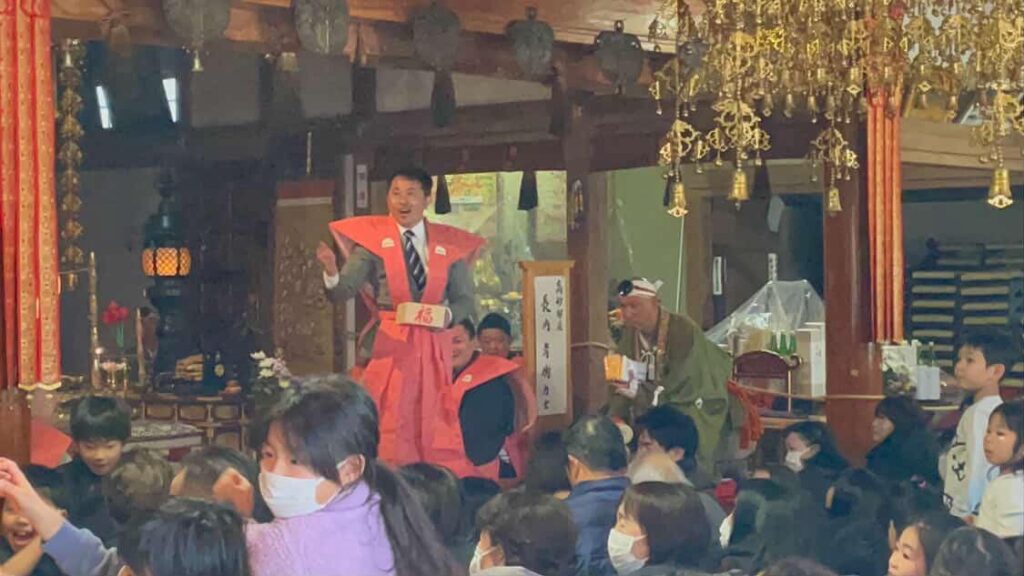 締めは、集まった皆様と全員で一斉に豆まき。賑やかな節分会となりました。