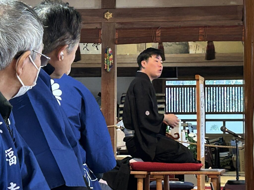 豆まき前には、和楽器の演奏や地元出身の落語家三遊亭仁之吉さんの落語も披露されました。