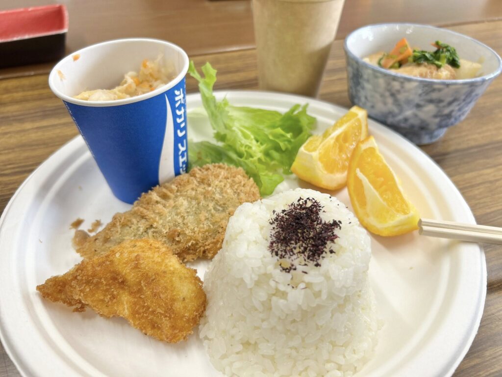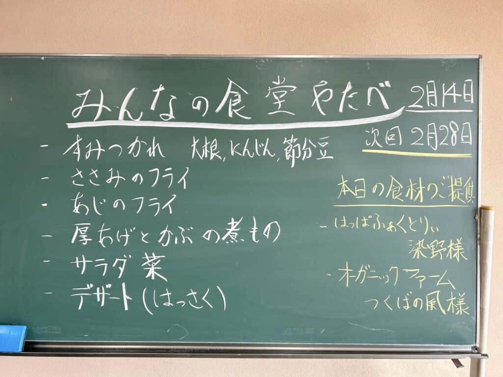 今日のお昼は、みんなの食堂やたべでランチ。 高校までお迎えに行った帰りに、娘と立ち寄って、美味しくいただいてきました。 次回は、2月28日に開催されます。市民ホールやたべ入口ののぼり旗が目印です。ぜひ、ご利用ください。