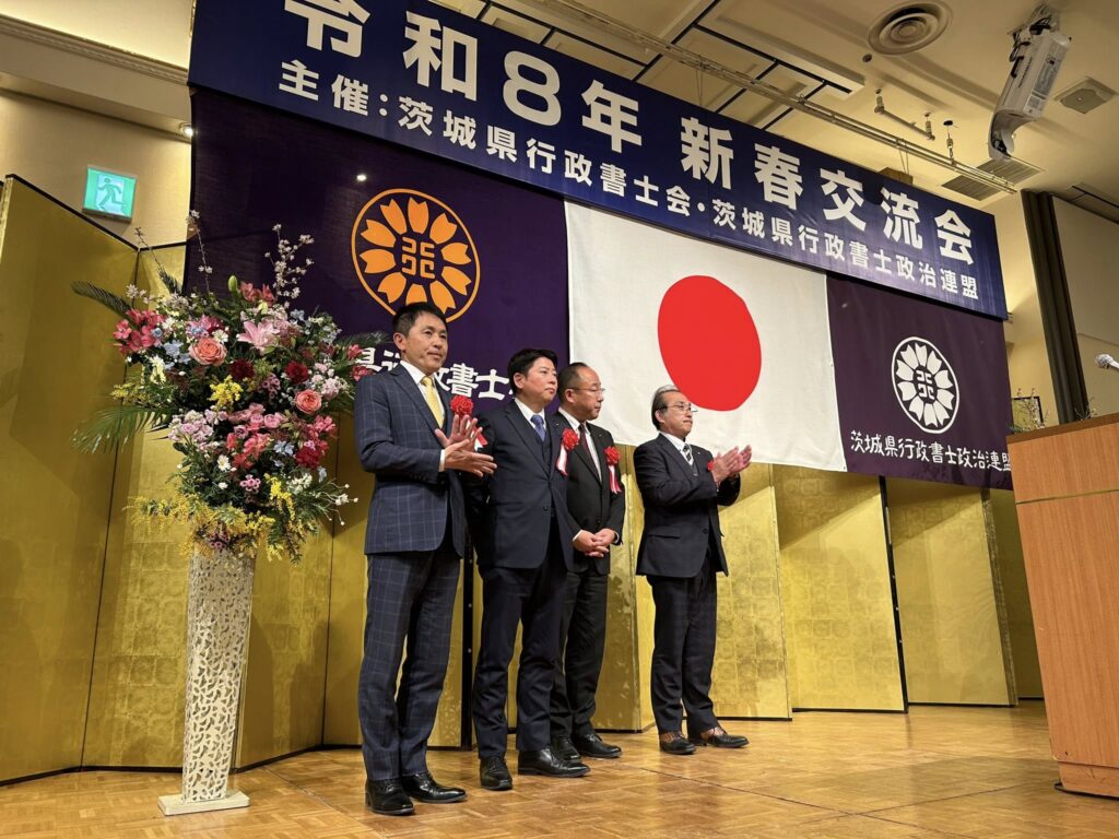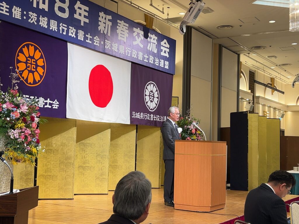 茨城県行政書士会並びに茨城県行政書士政治連盟の令和8年新春交流会が開催されました。毎年、この新春交流会が、その年の最後の新年会。顧問として出席しています。