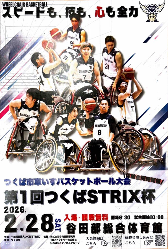 車いすバスケットボール大会「第1回つくばSTRIX杯」が開催されました。県外からのチームを迎えて、記念すべき初開催です。
