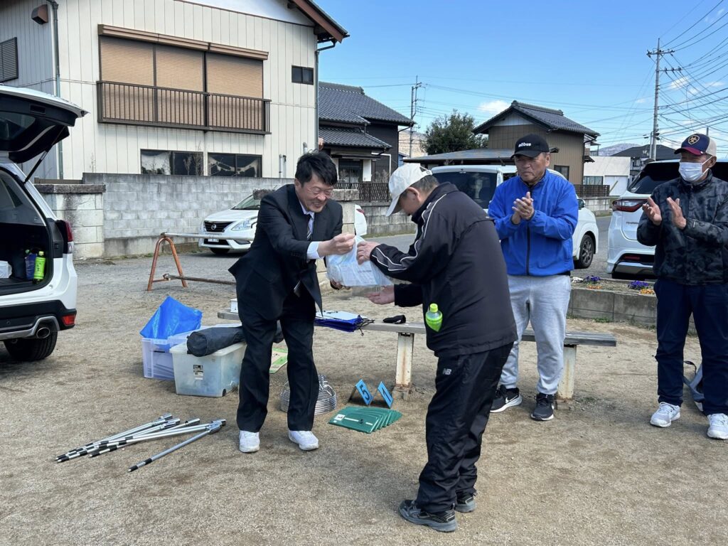 途中からとなりましたが、私もプレーで参加。芝のコースと土のグラウンドのコース、ミックスのコースとなかなか難しい。同組の皆様と談笑しながら、楽しくプレーしてきました。お疲れ様でした。