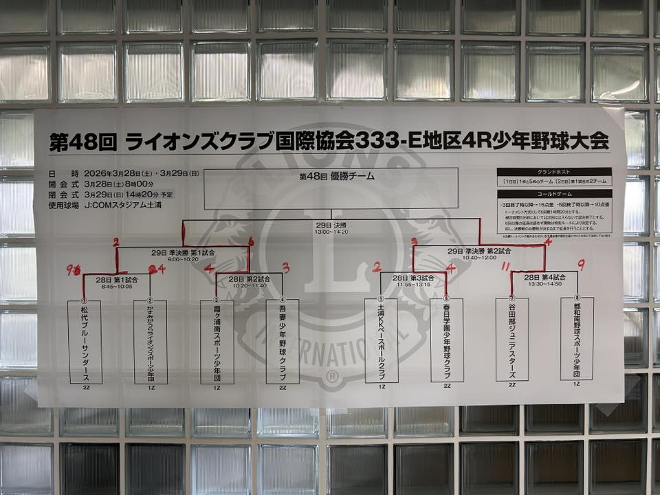 第48回ライオンズクラブ国際協会333E地区4R少年野球大会の2日目。昨日の続いて、準決勝と決勝が開催されました。