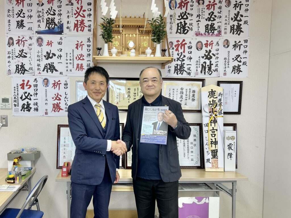 鹿嶋市長選挙で2期目の当選を果たした田口伸一市長。県議会時代は、同期として活動を共にしました。