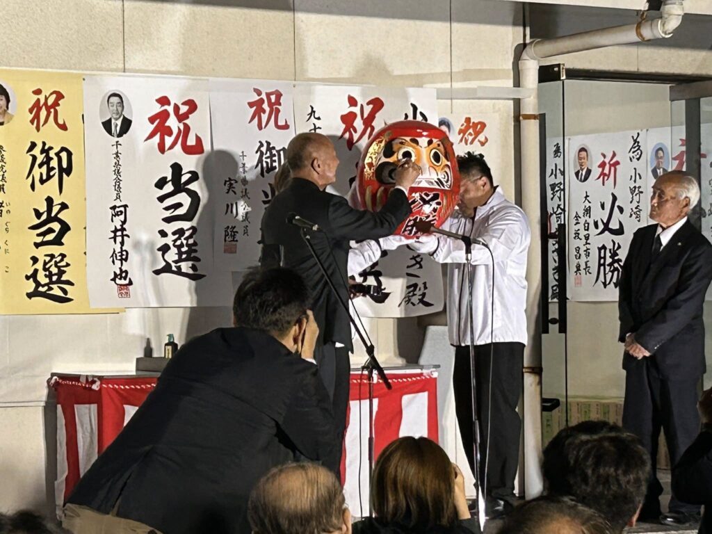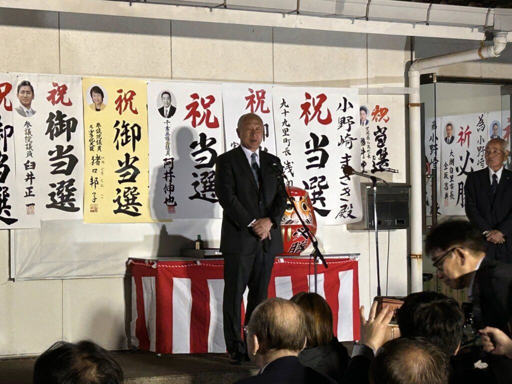 本日投開票の山武市長選挙。前千葉県議の小野﨑正喜候補が、三つ巴の選挙戦を制して初当選を果たしました。おめでとうございます。小野﨑候補とは、私が市議会議員時代に自民党青年局の研修などでご一緒したご縁で長らく交流させていただいています。市長としての益々のご活躍をお祈りします。